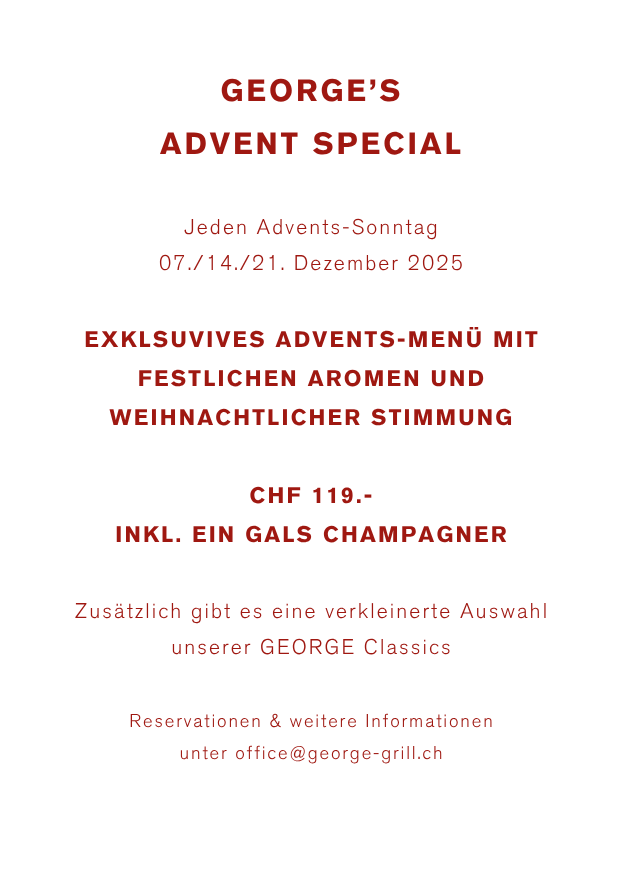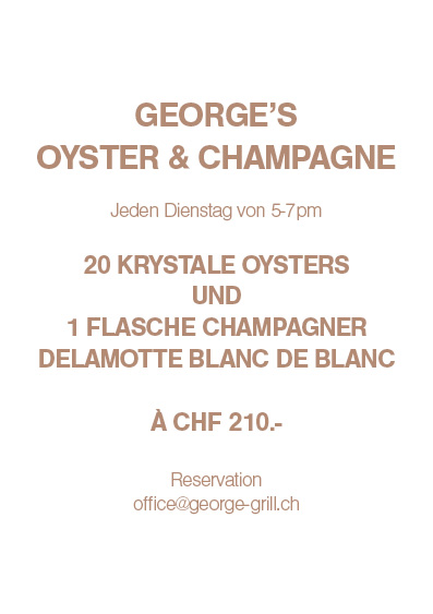 Discover incomparable hospitality at GEORGE Bar & Grill, high above the rooftops of Zurich. A breathtaking view of the city awaits you here – the perfect location to experience traditional service culture in all its grandeur. GEORGE offers a matchless experience that combines an exclusive selection of culinary products and first-class gastronomy.